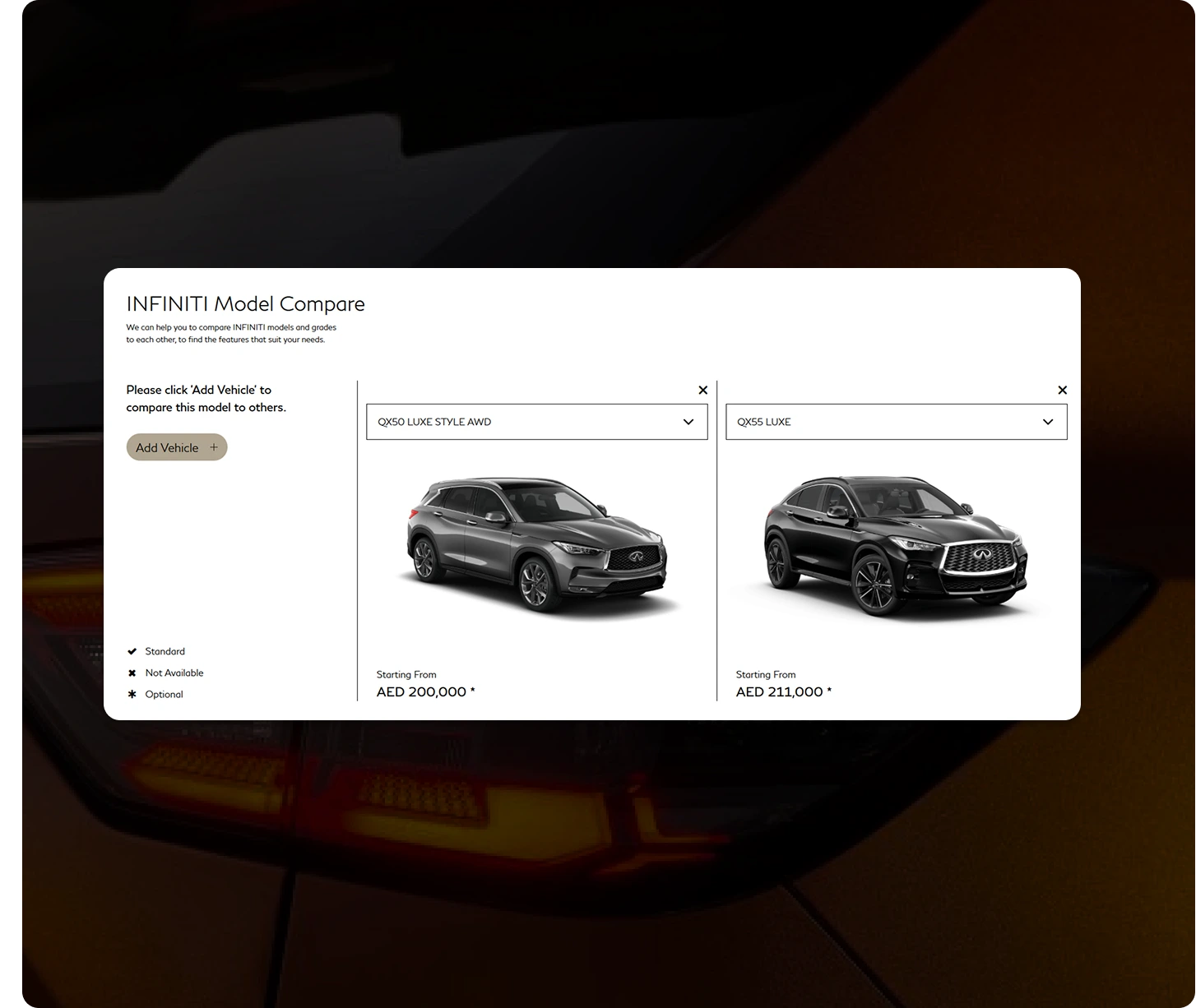 Infiniti Model Compare Tool